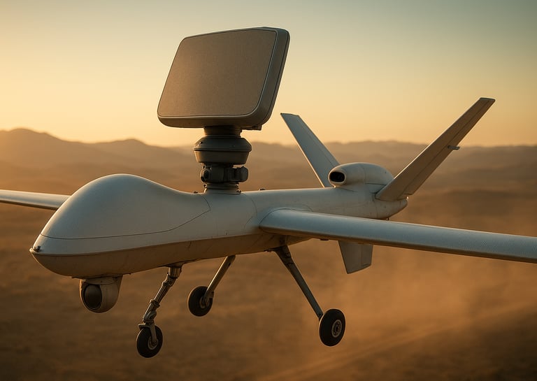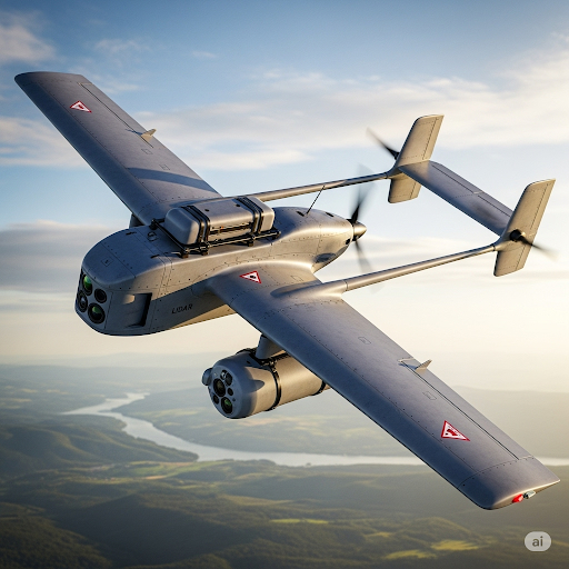 High-altitude, long-endurance (HALE) drone used for strategic reconnaissance using thermal cameras, ultrasonic sensors for military purpose with higher endurance and weapons capabilities. Designed with radar-absorbing materials and low acoustic signatures. Secure communication channels for transmitting real-time data back to command centers.