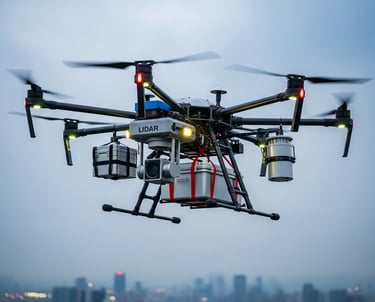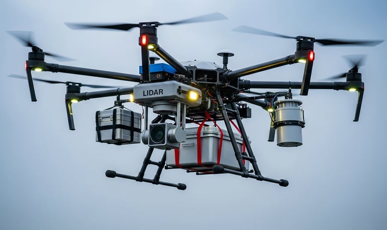Quad Copter drone is an advanced surveillance technology carrying out surveillance & mapping loaded with powerful Lidar Cameras for mapping of the region with the precision. Quad copter can have payload of upto 20-25 KG weight.